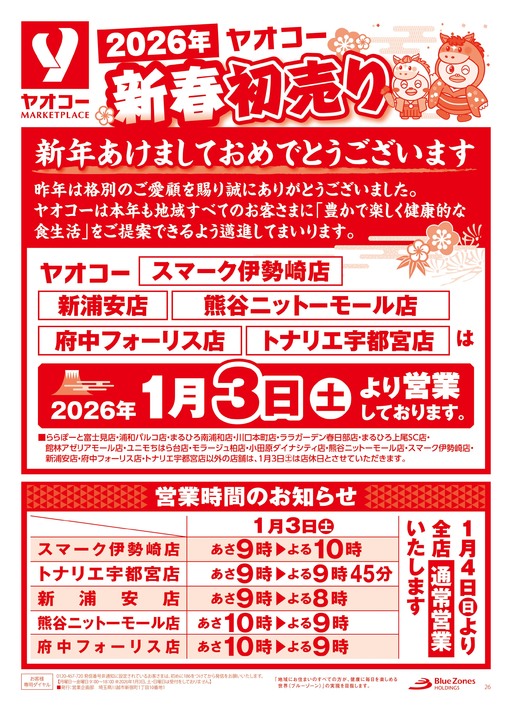 年末年始営業時間変更のお知らせ