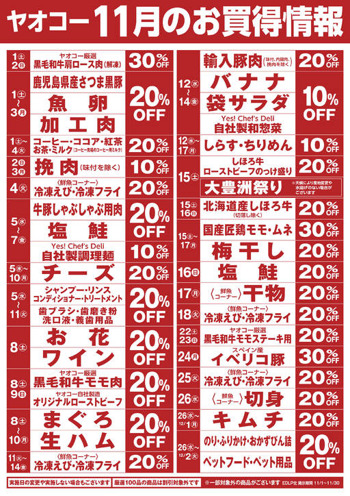 11月のお買得情報