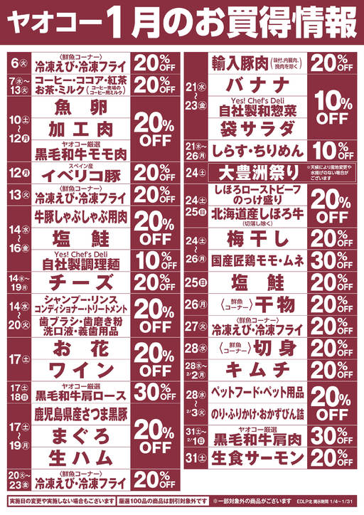 1月のお買得情報