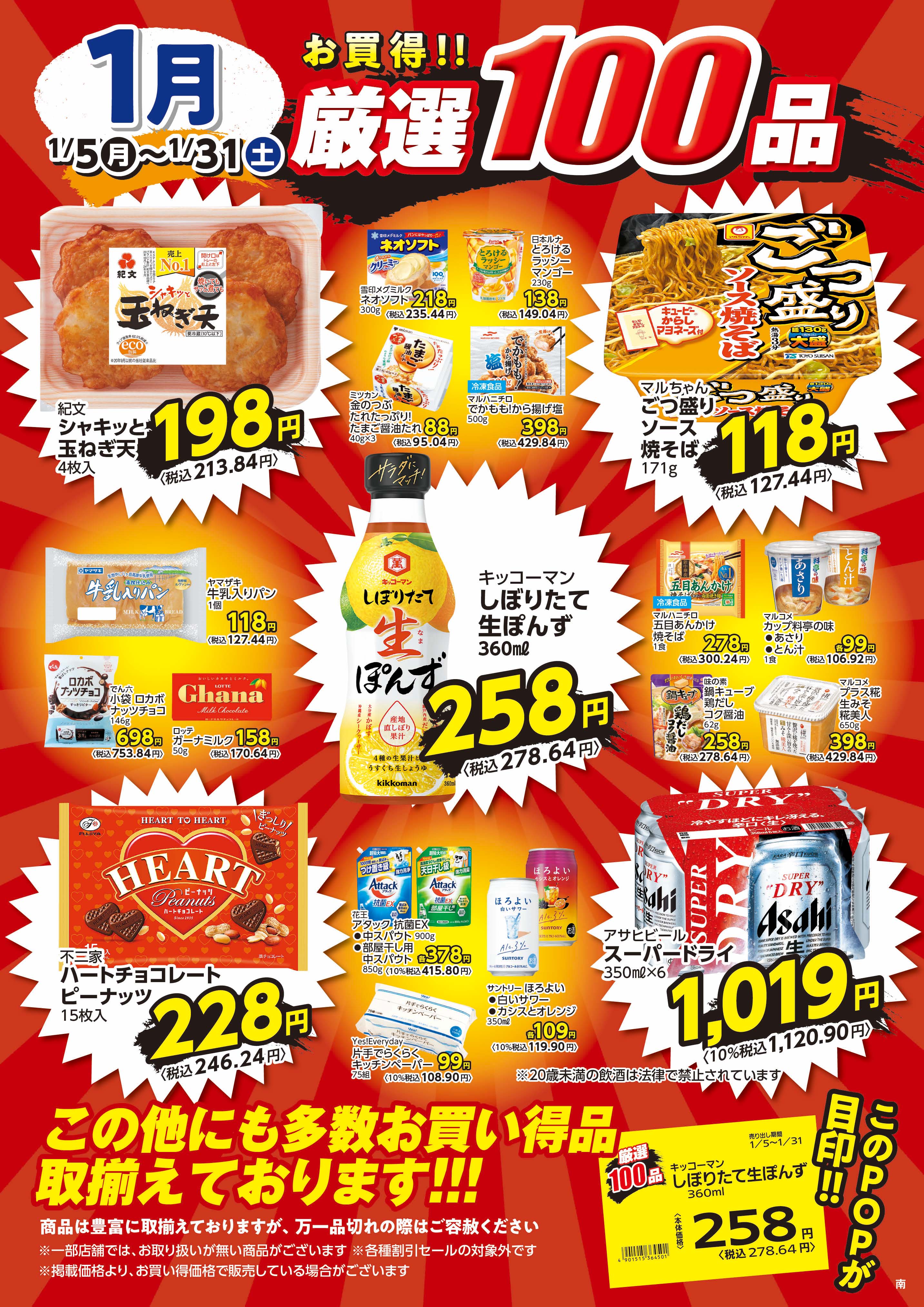 福生牛浜店 1月の厳選100品